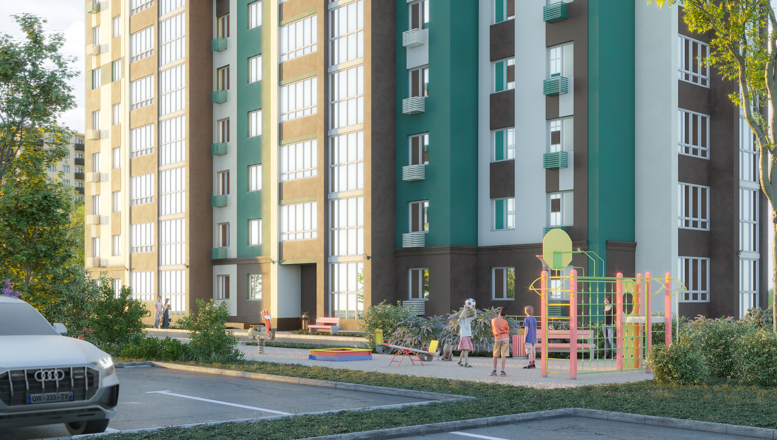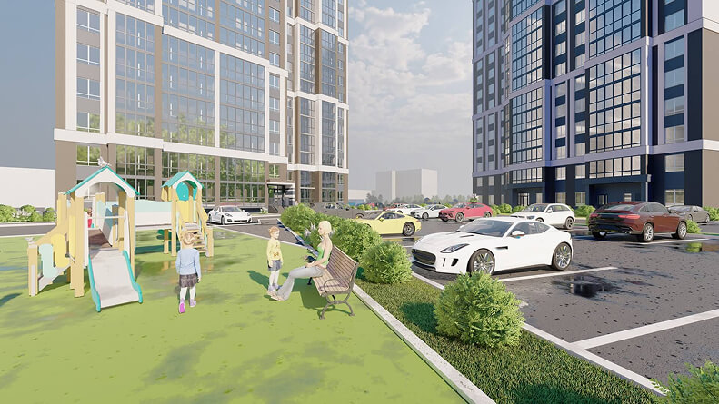 Гвардейский — это не просто жилой комплекс, это целая философия пространства. Здесь каждый элемент продуман так, чтобы создать уютную и безопасную атмосферу, где жизнь течет в гармонии с природой и окружающим миром. Закрытое пространство, сформированное домами, создает ощущение уюта и защищенности, при этом не требуя громоздких заборов или ограждений.
